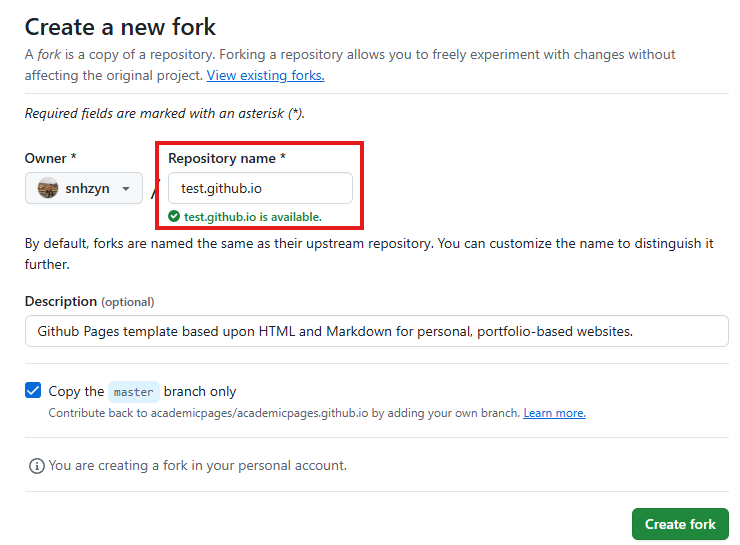 - Click the Fork in the top-right corner of the theme repository.