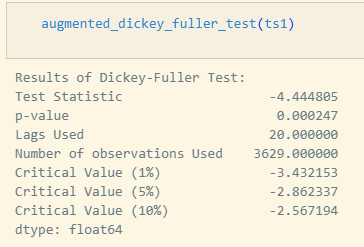 p-value가 거의 0에 가까움을 알 수 있는데요, 이를 통해 귀무가설을 기각하고 정상 시계열 데이터라고 해석할 수 있습니다.