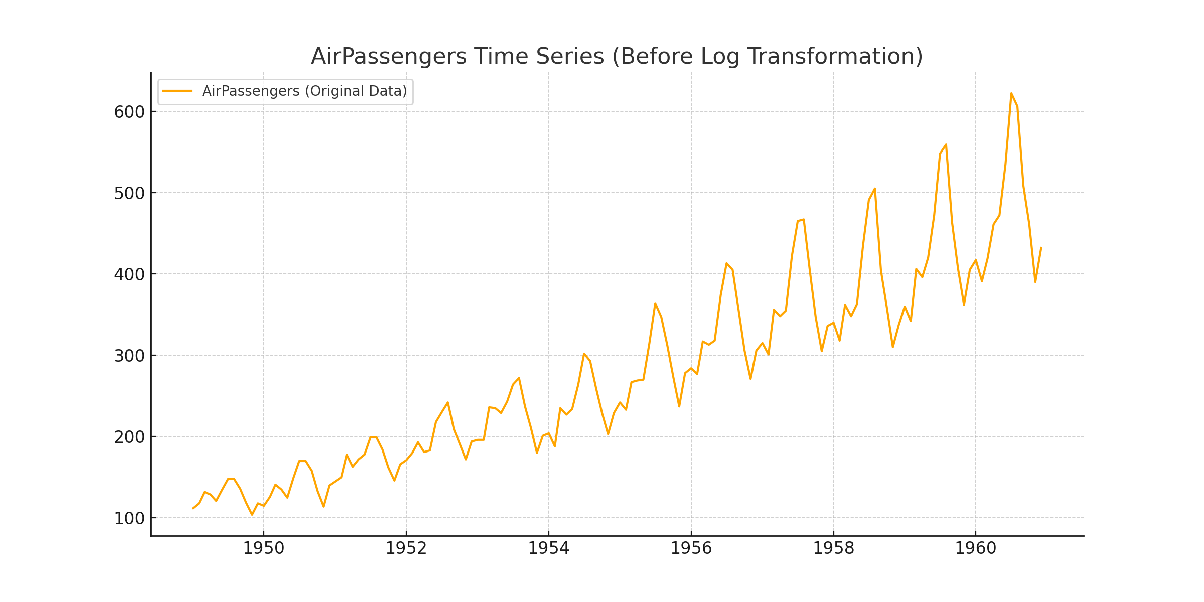 Note: 위 데이터는 Box, Jenkins, and Reinsel (1976), “Time Series Analysis: Forecasting and Control” 의 공개 시계열 데이터입니다