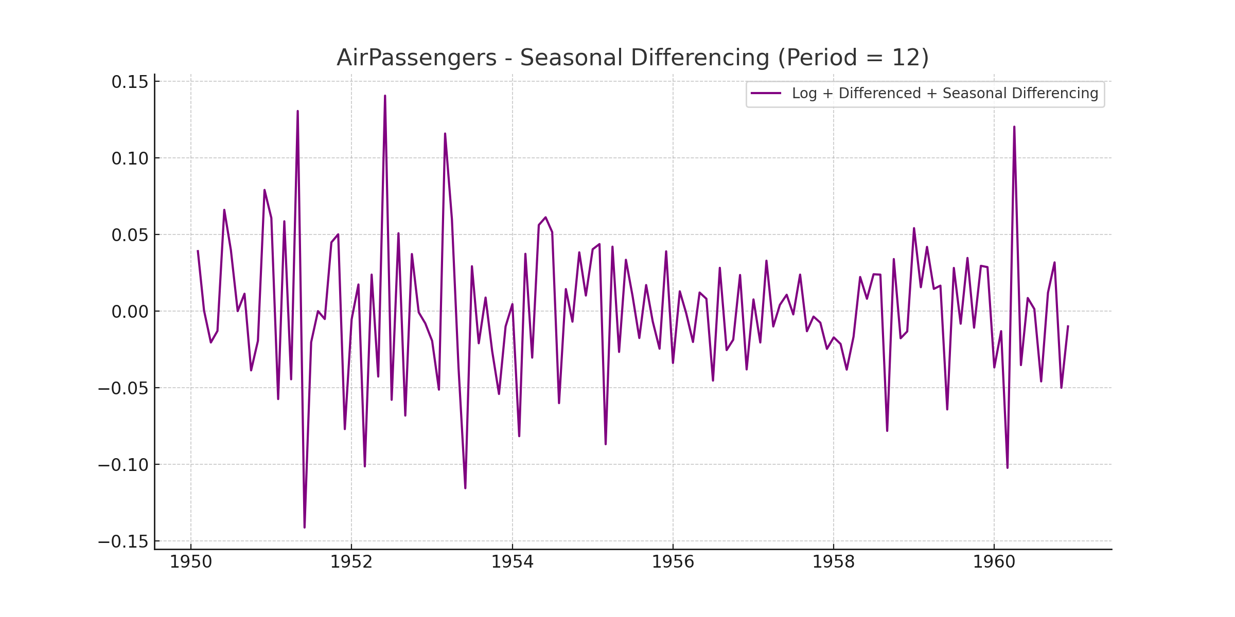 최종적으로 추세도 제거된 (시각적으로 봤을 때) 정상 시계열 데이터를 얻을 수 있습니다.